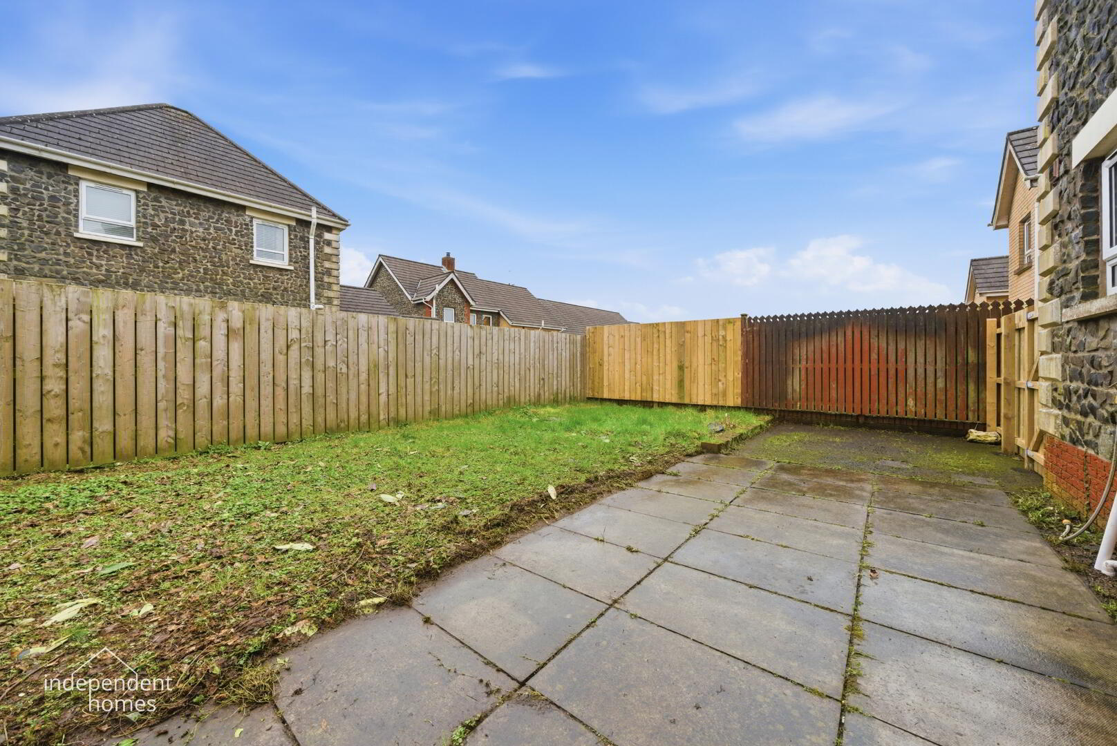 Outdoor Living: Front, side, and rear gardens with a dedicated patio area.