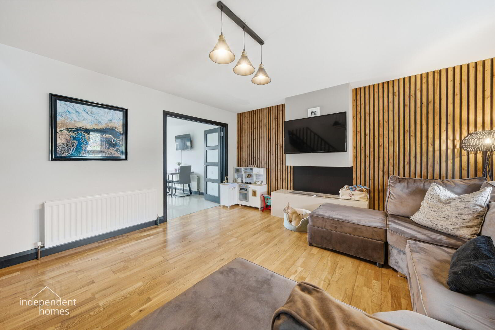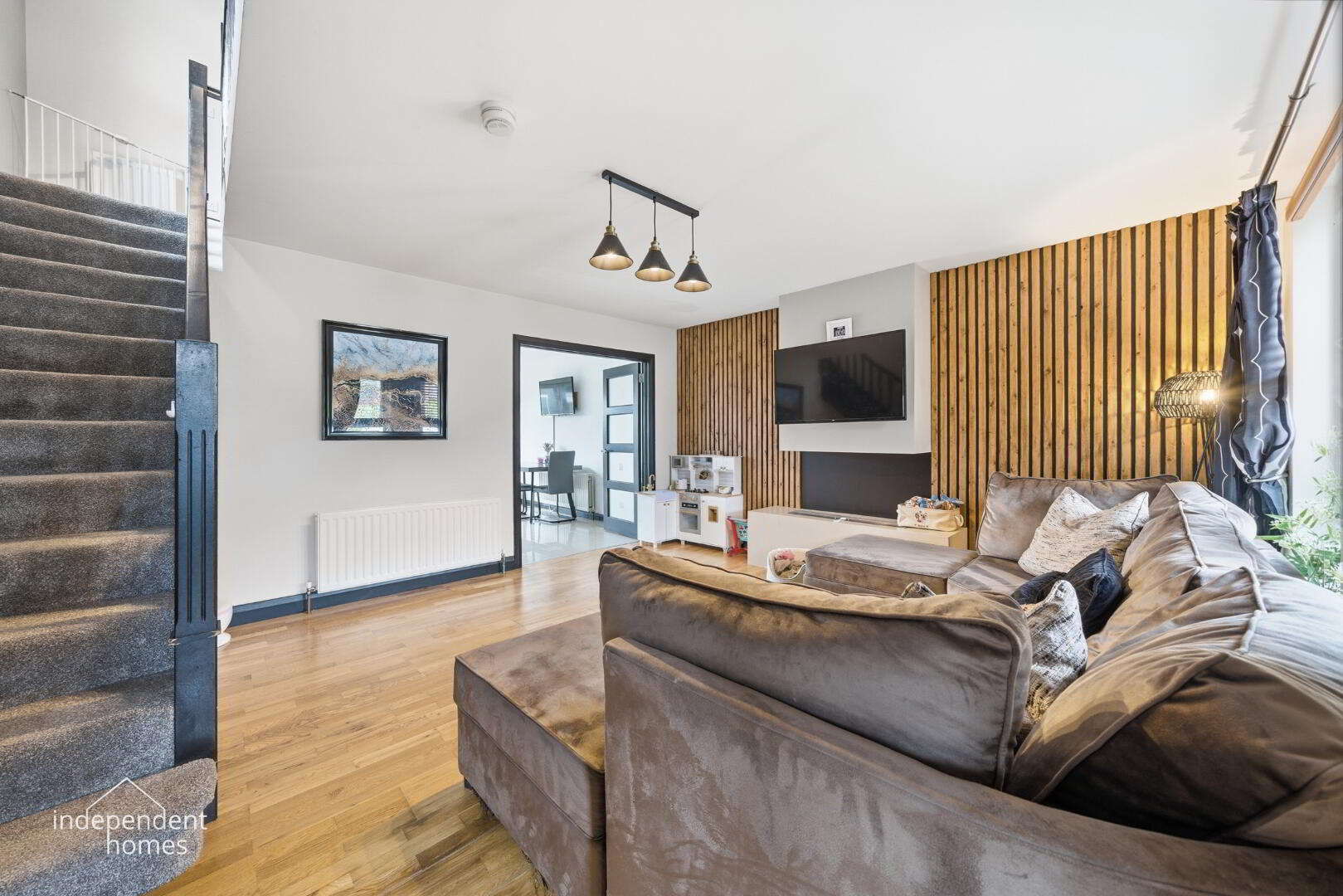 The ground floor features a bright and spacious Living Room, leading through to a contemporary Kitchen/Dining area—the true heart of the home. For added convenience, a dedicated Utility Room keeps the laundry out of sight. Upstairs, you’ll find three well-proportioned bedrooms, including a Master Suite with a private en-suite, alongside a modern family bathroom.